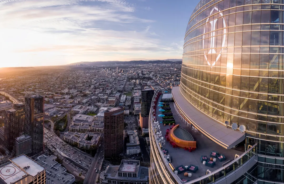 4-gwiazdkowy hotel leży w dzielnicy Centrum Los Angeles, tylko 2 km od takich miejsc kultu religijnego jak Świątynia Anioła. Miejsca na zakupy w okolicy to Targ Grand Central (1 km) i Śródmieście LA (1,1 km). Tarasy widokowe OUE Skyspace LA i Centrum handlowe FIGat7th znajdują się w zasięgu ręki od obiektu noclegowego. W ściślej odległości od 73-piętrowego Intercontinental - Los Angeles Downtown, An Ihg Hotel znajduje się stacja metra 7th Street Center.